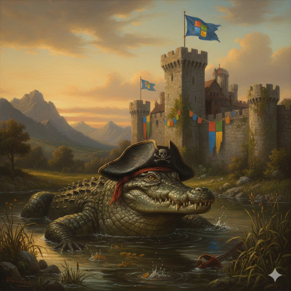 Конспирологи полагают, что лёгкость взлома Виндоуз вызвана именно тем, что Микрософт использует пиратов в качестве запущенных в ров крокодилов, которые охраняют его полумонополию.