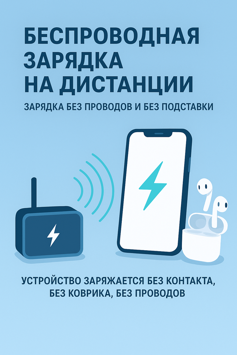 Представь, что твой телефон заряжается просто потому, что он находится в комнате. Никаких проводов, ковриков, подставок — просто лежит где-то на столе, а батарея сама пополняется. Вот это и есть дистанционная беспроводная зарядка — технология, которая стремительно развивается и скоро может стать обычным делом. ⚙️ Как это вообще работает В основе — радиоволны, лазеры или направленные электромагнитные лучи Принцип простой: 1. В комнате стоит маленькая станция (как Wi-Fi роутер). 2. Она отправляет энергию в виде безопасных волн. 3. Смартфон или наушники принимают её через мини-антенну. 4. Устройство начинает заряжаться — без контакта, без коврика, без проводов. Тебе даже не нужно класть телефон — он может лежать в кармане или на столе. 📡 Возможности этой технологии ✔️ Автозарядка в любом месте комнаты Достаточно быть в зоне действия станции, и гаджеты подзаряжаются сами. ✔️Заряжаются сразу несколько устройств Телефон, наушники, часы, пульт — всё заряжается одновременно. ✔️ Умные дом
