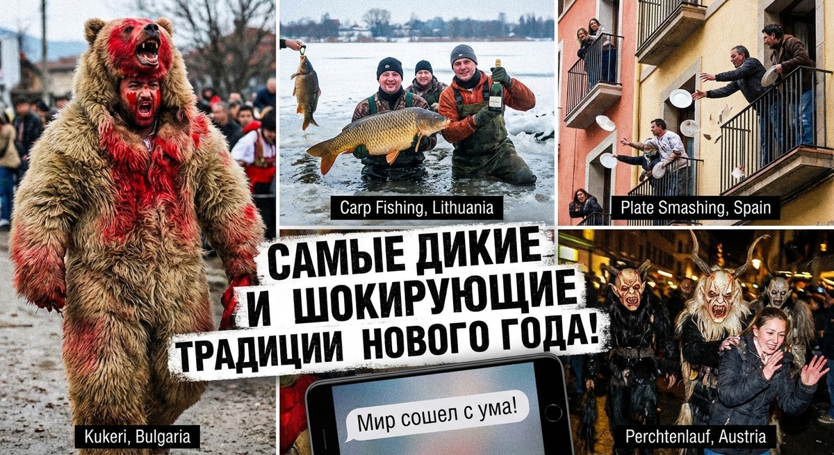 Забудьте про скучный тазик оливье и «Иронию судьбы» по десятому кругу! Пока мы мирно режем колбаску под бой курантов, в других уголках планеты творится настоящий трэш, угар и содомия. Люди дерутся до крови, спят на кладбищах и швыряют мебель на головы прохожим. Вы думаете, я шучу? А вот и нет! 😱 Я собрал для вас ТОП самых безумных новогодних традиций со всего света. Слабонервным и любителям спокойствия — приготовиться удивляться! 👇 🇮🇹 Италия и ЮАР: Осторожно, диван летит! 🛋️💥 Если вы думали, что итальянцы просто громко разговаривают, вы еще не видели их в новогоднюю ночь. У них есть старинная традиция: выкидывать старый хлам из окон. И ладно бы это были дырявые носки! В Неаполе из окна может вылететь старый тостер, стульчак от унитаза или даже кресло! Смысл прост: освобождаем место для нового счастья. 📍 Но в Йоханнесбурге (ЮАР) пошли еще дальше. В квартале Хиллброу полиция каждый год умоляет жителей не делать этого, но... они выбрасывают из окон небоскребов ХОЛОДИЛЬНИКИ и КРОВА