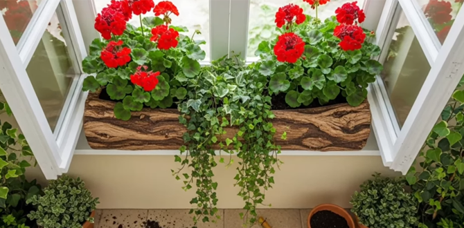 Старая оконная рама или даже собранная из сухих веток конструкция, легко превращается в эффектный цветочный ящик. Повесьте раму на стену или забор, закрепите под ней импровизированный короб и посадите туда герань и плющ. Грубая старая древесина, облупившаяся краска и нежные цветы создадут ту самую атмосферу старого итальянского дома. Такой прием мгновенно задает настроение и делает даже обычную стену частью итальянского сада.