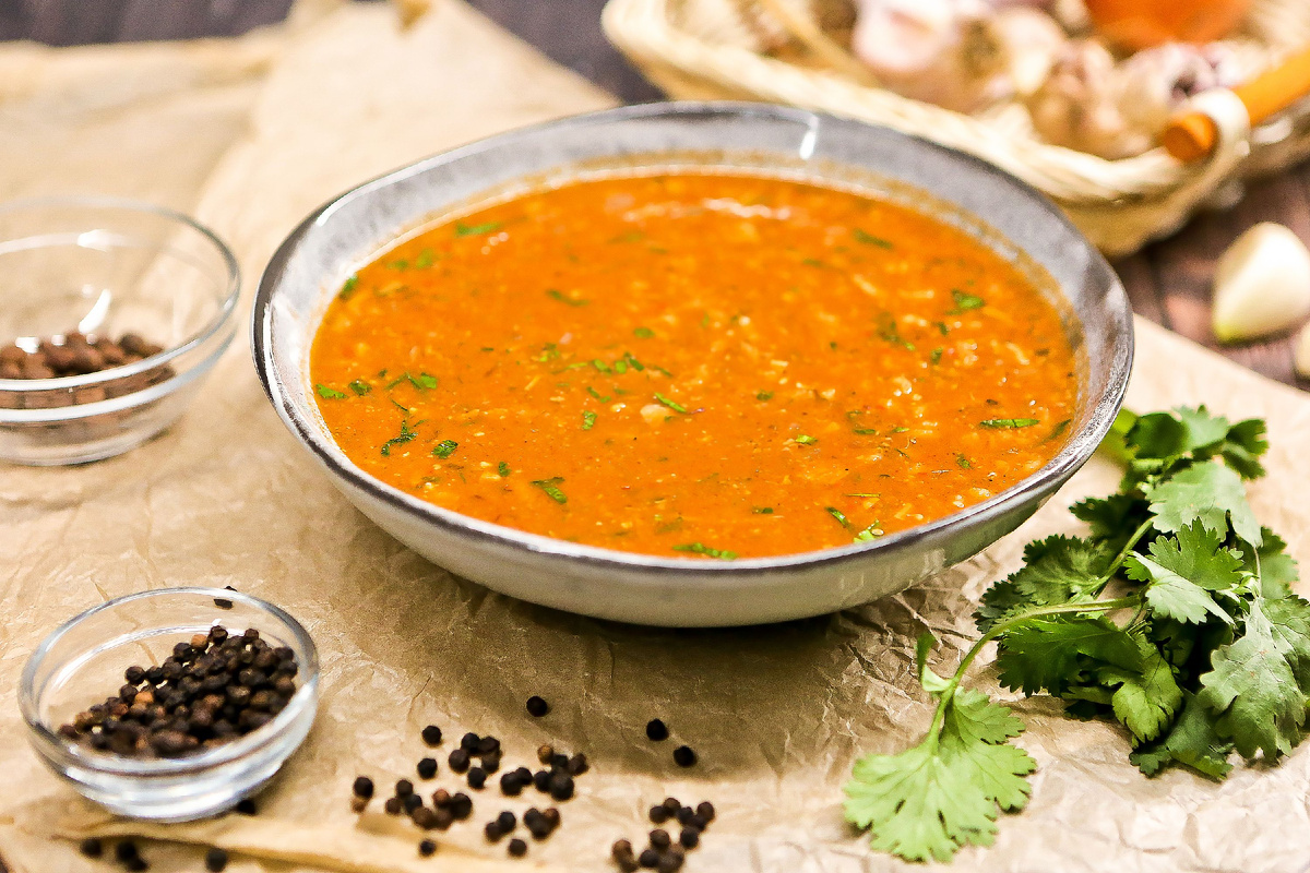 Есть блюда, которые греют не только желудок, но и настроение. Блюда, в которых есть нечто большее, чем набор ингредиентов. Харчо — именно из таких. Он похож на теплую историю, которая раскрывается медленно: сначала ароматами, потом густой текстурой, а уже после — характером. Когда мы освоили искусство легких бульонов и научились убирать лишний жир, самое время применить эти навыки на деле и приготовить настоящую жемчужину грузинской кухни. Харчо любят за его темперамент. За то, что в нем живет сразу несколько настроений: кислинка – бодрит, острота – собирает мысли, орехи – придают глубину, травы – тепло и уют. Это суп, который не терпит суеты. Он требует времени, внимания, правильного ритма. И взамен дает то самое чувство, будто на кухне стало на несколько градусов теплее, даже если за окном декабрьский ветер. Чтобы получить харчо, который хочется готовить снова и снова, важно понимать его суть: это не просто «острый суп с рисом». Это суп-персонаж. В нем нет случайных шагов. Каждый про