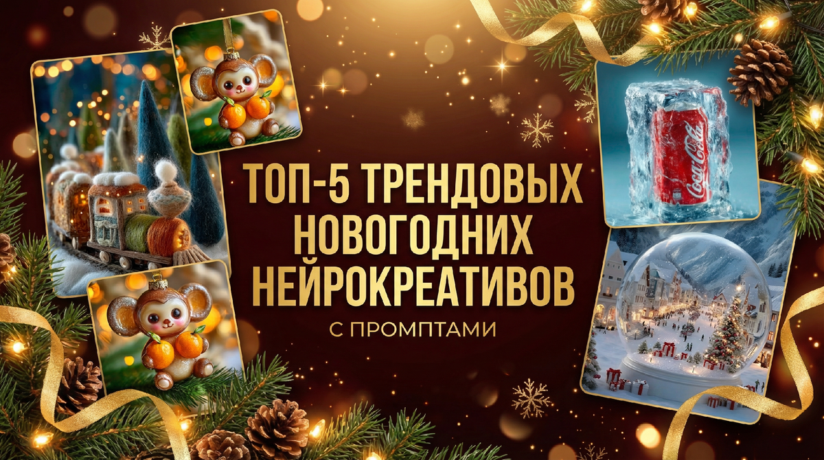 Нейроконтент обрастает своими трендами не хуже, чем Instagram* или TikTok. И если вы нейрокреатор или просто блогер и хотите быстро расти, привлекать внимание и попадать в рекомендации — трендвотчинг становится обязательным навыком. Особенно сейчас, когда спрос на нейрокреативы бьёт рекорды, а лента уже заполняется эстетичными зимними генерациями. В этой статье мы собрали ТОП-5 свежих новогодних трендов 2025–2026, которые уже становятся вирусными. === Привет! Я Юлия Орлова — IT-предприниматель и эксперт по искусственному интеллекту. Создатель стартапа в области ИИ, владелец студии разработки онлайн-продуктов. Автор курса "Войти в ИИ". Работаю с генеративными моделями с 2022 года) === Каждый тренд — с точным описанием, примерами и готовыми промптами, чтобы вы могли повторить креативы в MIDJOURNEY так же красиво и реалистично. 1. Вязаные сюжеты Промпт: Miniature wooden and yarn train moving on railroad tracks surrounded by textile pine and fir trees in dark green and white felt with fi