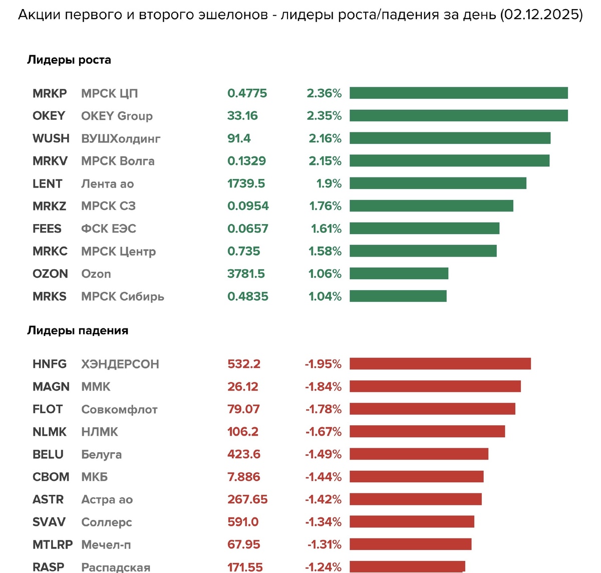 Всем привет. По итогам основной сессии 2 декабря индекс Мосбиржи потерял 0,7% на фоне вечерних заявлений Путина перед встречей с Витьковым. В целом понятно, что никаких положительных новостей ждать не стоит. Кратный рост рынка на мире? Что «курит» Костин? Провел опрос читателей: Не забудьте закрыть «ферму» в Т-инвестициях Я сегодня 7 из 10 закрыл, так как с 4 декабря бесплатную маржу дают только по трем. Про мои сделки Начал сокращать облигации Векус, взятые в маржу более месяца назад. Роста как не было так и нет. Махнул еще некоторое количество Эталона 3 на 4. А что сегодня покупали/продавали вы?