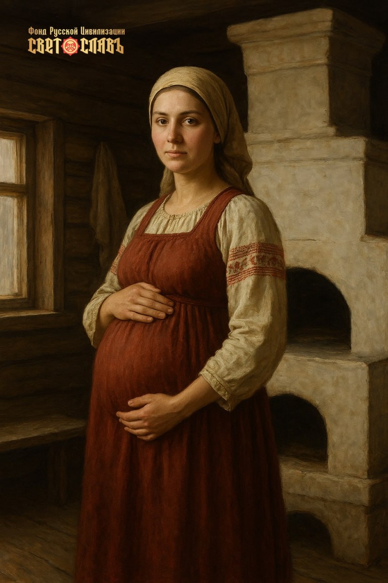 🤰 Знаете ли Вы о периоде беременности на Руси? Беременность — один из самых насыщенных символикой периодов в народной культуре. Это состояние, в котором женщина «переходит» в другое социальное измерение: её берегут, к ней относятся как к человеку, связующему мир людей и мир духов, предков и природы. Традиции тут становились системой «защитных механизмов», где часть обрядов была магической, но в ряде случаев — и удивительно рациональной. Сегодня мы можем увидеть, что многие народные представления отвечали физиологии, психологии и даже иммунологии. 🌾 Лёгкая работа «Пока дитё не прижилось — не копай землю. Земля тяжёлая, заберёт силу». (Псковщина) С научной точки зрения, это четкое понимание хрупкости первого триместра. Сегодня акушеры говорят: интенсивная нагрузка увеличивает риск угрозы прерывания, а длительная работа в наклоне — ухудшает кровоток в матке. «Перенапряжёшься весной — осенью не родишь». Свободная одежда — не экономия, а страховка Беременные носили длинную одежду