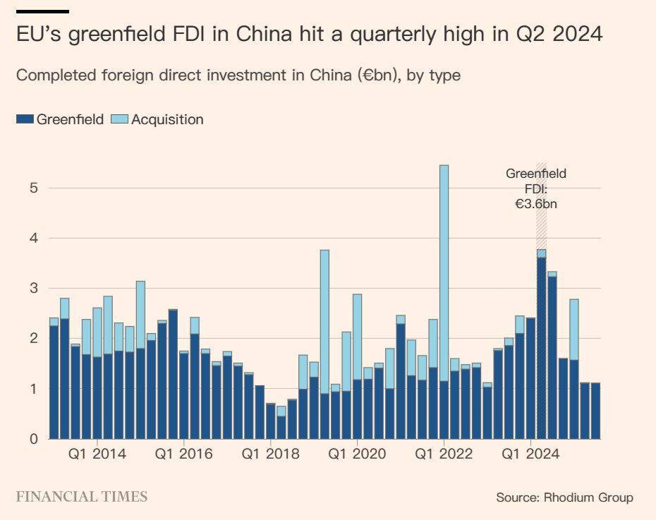 Европейский бизнес тайно наращивает производство в Китае вопреки политике ЕС В Европе уже несколько лет обсуждают одну и ту же проблему: «мы слишком зависим от Китая, нужно диверсифицироваться». Политики из Брюсселя делают громкие заявления, придумывают стратегические документы, закручивают новые регуляции. Но если посмотреть, что делает европейский бизнес на практике… он просто тихо продолжает инвестировать в Китай. И даже больше, чем прежде. Свежий опрос Европейской торговой палаты показывает интересный перекос: примерно четверть компаний увеличивают производство в Китае. Это вдвое больше, чем тех, кто действительно переносит операции в Индонезию, Мексику, Восточную Европу или куда-то ещё. То есть “декуплинг” звучит красиво, но в реальности выглядит как «мы переживаем, но деньги всё равно отправляем в Китай». Причина проста и предельно прагматична. Китай остаётся местом, где можно делать вещи быстро, дёшево и эффективно. • цепочки поставок отточены десятилетиями; • рабочая сила