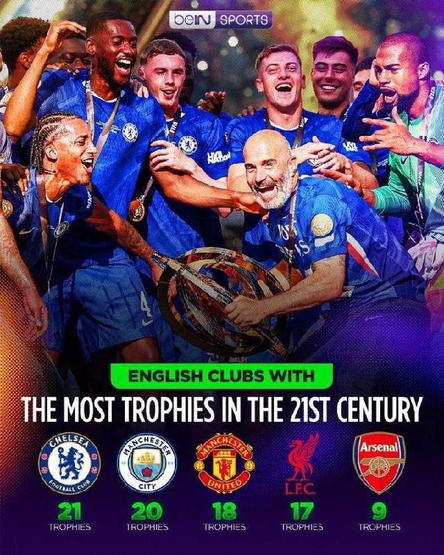 Среди английских команд "Челси" завоевал больше всех трофеев в 21-м веке 🥇
