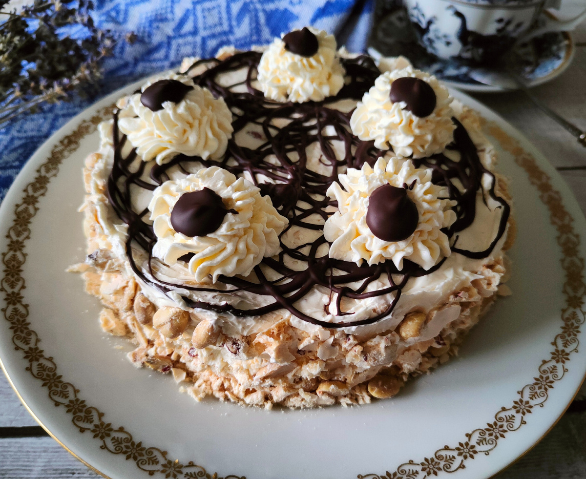 Этот хрупкий воздушный торт, без муки в составе, в советские годы был достойным конкурентом знаменитому "Киевскому", только попроще и подешевле. Меренговые коржи, жареный арахис и масляный крем Шарлотт на заварной основе - всё это классический торт "Полёт":