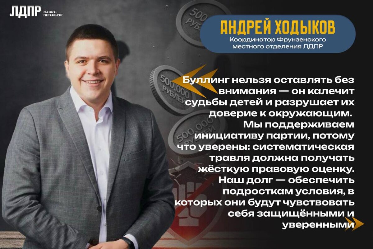 ЛДПР защищает детей и подростков от давления и несправедливости 2 декабря 2025 года фракция ЛДПР во главе с Председателем партии Леонидом Слуцким внесла в Государственную Думу законопроект, направленный на введение административной ответственности за систематический буллинг - как в образовательных учреждениях, так и в цифровой среде. По статистике, с травлей сталкивается каждый четвёртый школьник, а 75% детей становятся жертвами кибербуллинга. Эти цифры - прямой сигнал к действию. Сегодня закон реагирует в основном на разовые оскорбления, но не защищает ребёнка от повторяющихся, целенаправленных издевательств. ЛДПР предлагает исправить эту ситуацию. Законопроект предусматривает штрафы: • до 50 тысяч рублей для граждан; • до 200 тысяч рублей для должностных лиц; • до 500 тысяч рублей для организаций. Это станет реальным инструментом защиты и профилактики травли, создаст безопасную атмосферу в школах, колледжах и в интернете. Андрей Ходыков, координатор Фрунзенского местного отделени