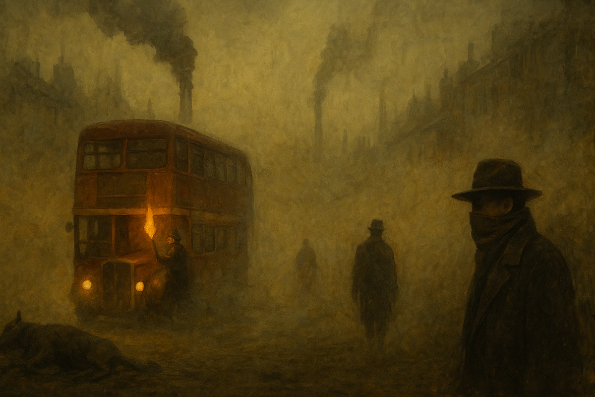 Погода сыграла свою жестокую партию, когда антициклон накрыл Лондон плотным куполом, который запер холодный воздух и всю городскую копоть у поверхности земли, не позволяя ей рассеиваться. Смог стал настолько густым, что люди не могли видеть дальше вытянутой руки, а водители автобусов зажигали факелы, чтобы хоть как-то различать дорогу и не въехать в стену или прохожего. Запах гари проникал в дома и больницы, создавая ощущение удушья даже в помещениях, где люди обычно находили защиту от зимнего холода, и город постепенно превращался в ловушку, где не было спасения ни на улице, ни внутри зданий. Животные погибали на фермах, транспорт застревал в темноте, театры отменяли представления, потому что публика не могла добраться, и никто не понимал, когда этот кошмар закончится.