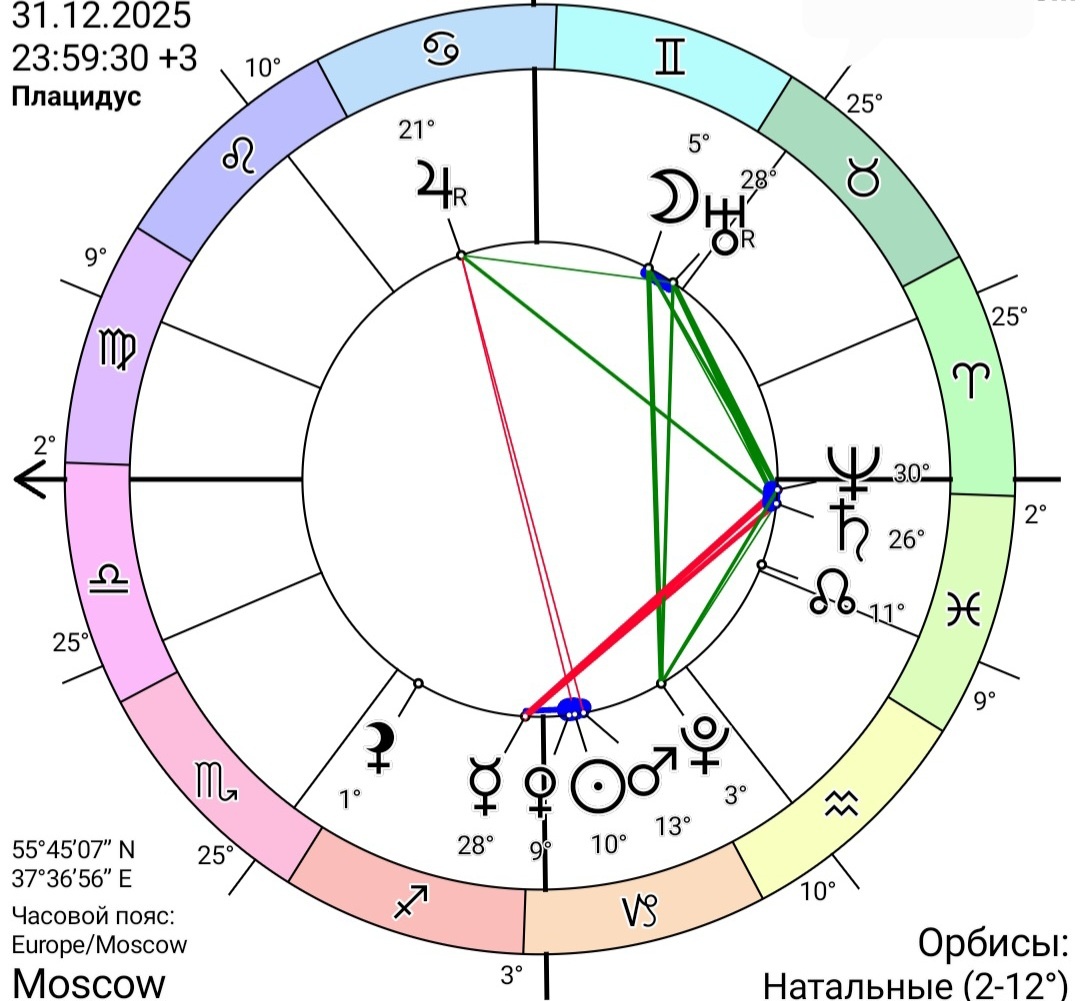 Друзья! Переход из 2025 в 2026 год будет не просто волшебным — он будет по-настоящему звёздным! Конфигурация планет в эту ночь задаст мощный, практичный и неожиданный тон всему грядущему году. Давайте расшифруем главные сигналы Вселенной. ☆ Солнце и Венера в соединении в Козероге. Это суть вечера. Энергия притягательности (Венера) сливается с нашей волей и целью (Солнце) в земном, амбициозном Козероге. Говорит о том, что наши желания и намерения на будущий год должны быть конкретными, продуманными и практичными. Самые прочные связи (деловые и романтические) будут завязаны на основе общих целей и уважения. ☆ Марс в Козероге добавляет целеустремлённости, дисциплины и огромного трудолюбия. Это энергия для воплощения новогодних обещаний в жизнь. ☆ Растущая Луна в Близнецах в соединении с Ураном. Вот где начинается праздник и сюрпризы! Луна в Близнецах жаждет общения, лёгкости, новостей и смены впечатлений. А в соединении с Ураном — это гарантия неожиданных встреч, озарений, спонтанных р