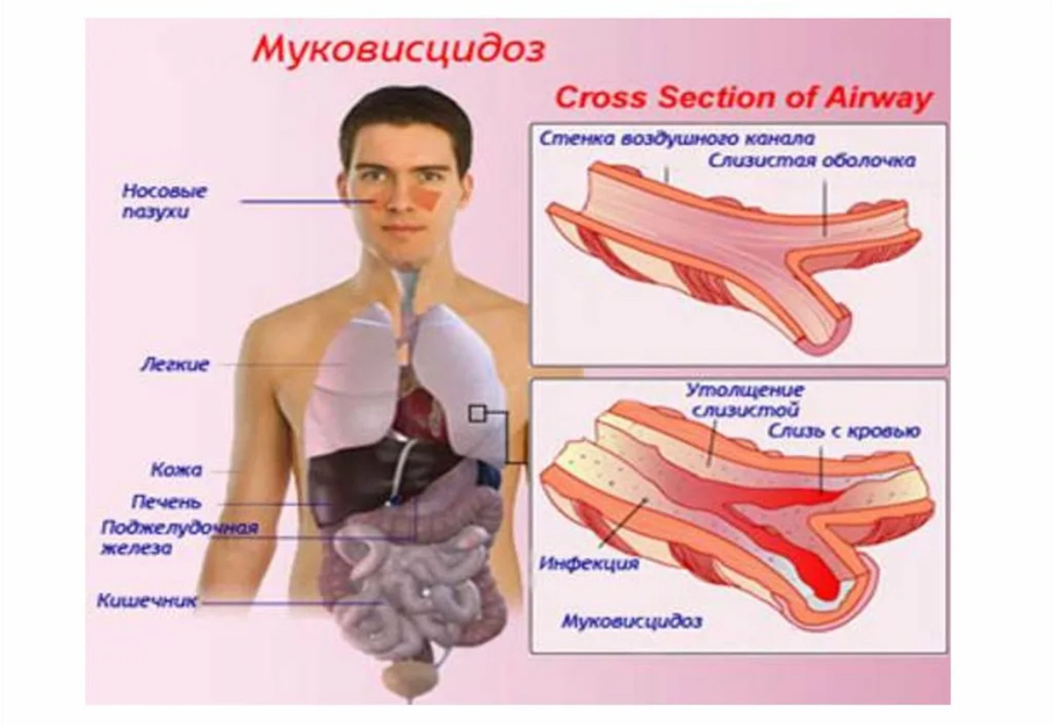 Эпителий жасушаларының дисфункциясы бронхтарды, ішек және ұйқы безін зақымдайды;