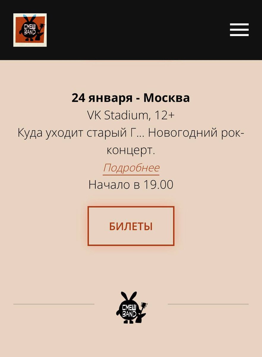 Легендарный коллектив объявил о грандиозном событии — новогоднем концерте, посвящённом культовым героям детства каждого россиянина, любимым Смешарикам. Старт дан, пульс учащается, сердце готово биться быстрее от предвкушения волшебства и эмоций, ожидающих поклонников любимой анимации и настоящей рок-музыки. Однако шоу становится особенным событием не только благодаря музыке. Мероприятие погружает зрителей в атмосферу самого настоящего праздника, полную юмора, веселья и настоящих приключений. Каждый участник концерта почувствует себя частью уникальной истории, полной сюрпризов и незабываемых моментов. Билеты продаются настолько быстро, словно фан-клуб артиста отправил специального агента с реактивным ранцем на охоту за ними. Реклама. ООО «Яндекс Плюс». ИНН: 9705177420 Послушать все треки группы можно так же на платформе Яндекс Музыки. К слову, там сейчас есть акция для новых пользователей 45 дней подписки бесплатно! А для тех, у кого последняя активная мультиподписка закончилась боле