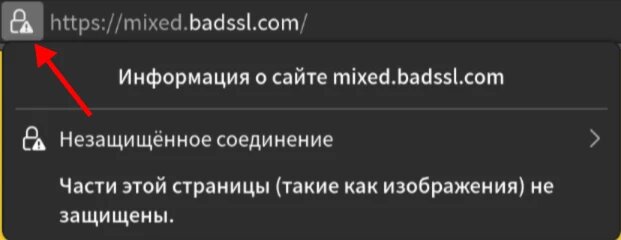 Определить наличие Mixed Content на сайте можно по следующим признакам: