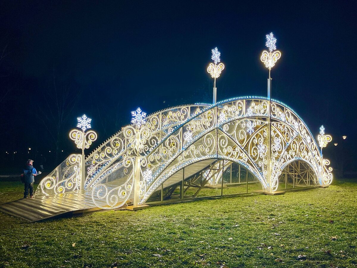 Вечером горка конечно выглядит🔥 прям как из царства снежной королевы! Только снега нет)