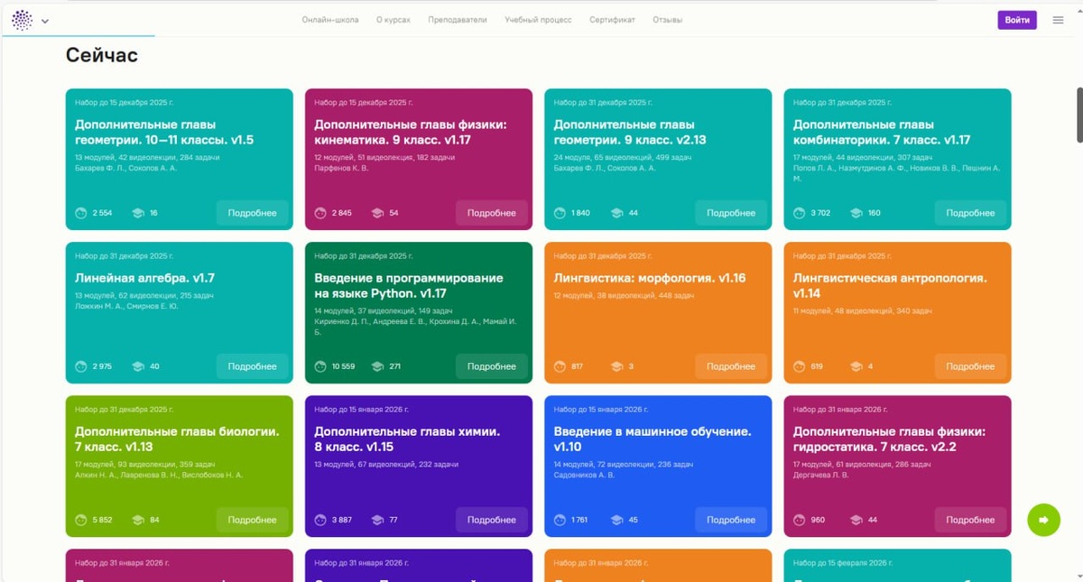 35 бесплатных курсов для старшеклассников на платформе Сириус.Курсы Сириус.Курсы — это онлайн-школа дополнительного образования. Здесь учатся школьники и учителя, студенты вузов и все, кто хочет изучить предметы за пределами школьной программы и разобраться в сложных задачах. Ученики самостоятельно выстраивают индивидуальную траекторию, определяют темп и удобное время учёбы. В онлайн-школе доступны курсы по математике, информатике, физике, химии, биологии, лингвистике, искусственному интеллекту. Обучение бесплатное — выбирайте один или несколько курсов и погружайтесь в науку!