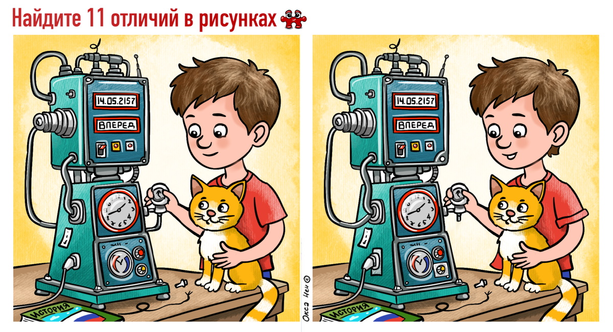 Всем хорошего настроения! Сегодня отличия спрятались на картинке про мальчика изобретателя и его машину времени. Хорошее изобретение. Куда бы отправиться? Горизонтальный тест: Вертикальный тест: Ответ: