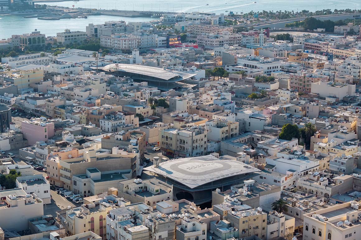 Прежде чем мы вернемся к японским и другим азиатским проектам с трубобетоном, стоит сделать паузу и рассказать об одной из неочевидных, но очень впечатляющих работ швейцарского архитектора Кристиана Кереза — проекте выставочного павильона и четырёх паркингов в Бахрейне. В самом сердце густонаселённого старого города Мухаррак, объекта Всемирного наследия ЮНЕСКО, эта работа радикально переосмысливает концепцию общественной инфраструктуры. Эти бетонные структуры, спроектированные швейцарским архитектором Кристианом Керезом, являются ключевой частью масштабного культурного и регенерационного проекта «Pearling Path» (Путь жемчуга). В Мухарраке выставочный павильон (Visitor Centre) и четыре автостоянки (Four Car Parks), построенные по его проекту, вместе с работами других звездных бюро — Энн Холтроп, Валерио Ольджати и OFFICE Kersten Geers David Van Severen — формируют новый общественный каркас исторического района. Архитектура без пандусов: непрерывный ландшафт Идея Кереза была в отказе