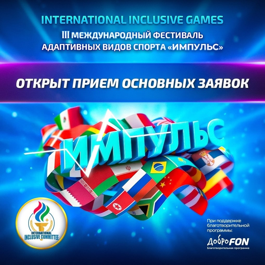 ⚡️ Открыт приём заявок на III Международный фестиваль адаптивного спорта «Импульс» Международный Инклюзивный Комитет официально открыл прием основных заявок на участие в III Международном фестивале адаптивных видов спорта «Импульс» (International Inclusive Games). Мероприятие пройдет в Сочи с 26 по 29 марта 2026 года. В этом сезоне программа впервые будет включать не только классические, но и воздушные, ледовые и водные адаптивные дисциплины — всего более 30 видов спорта. Ожидается, что в соревнованиях примут участие свыше 3000 спортсменов-любителей и полупрофессионалов с инвалидностью из более чем 20 стран мира. Участие открыто для спортсменов с ограниченными возможностями здоровья (ОВЗ) или инвалидностью. Прием ведется по двум категориям: 📍 Индивидуальные заявки: подаются до 1 марта 2026 года через электронную форму или на email оргкомитета: blago@inclusivecommittee.com. Бланк заявки доступен в разделе «Документы» на официальном сайте фестиваля (festimpulse.com). 📍 Групповые з