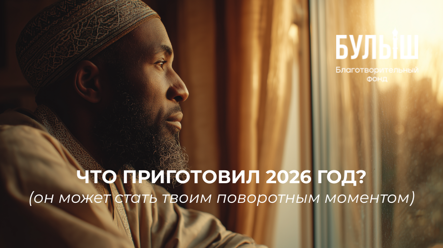 Он сидел в тишине, глядя на календарь. До 2026 года оставались считанные дни. В СЕРДЦЕ - ТРЕВОГА. А вдруг именно этот год принесёт нечто великое или… сокрушительное? Он вспомнил слова из Корана: «Воистину, только Аллах обладает знанием о Часе…» (Сура Лукман, аят 34). Никто не знает, что нас ждёт. Но каждый может выбрать - постараться БЫТЬ ГОТОВЫМ или быть застигнутым врасплох. 2026 - это не просто очередной год. ЭТО ШАНС. Шанс исправить, пока есть время. Шанс укрепить свою веру, пока не поздно. Шанс помочь другим, пока сердца не очерствели. Ты не знаешь, что будет завтра. Но ты точно можешь СДЕЛАТЬ ДОБРО СЕГОДНЯ. Почему бы не начать прямо сейчас? Мы искренне благодарны за вашу помощь нуждающимся. Пожалуйста, не забывайте нас в своих дуа. С уважением, команда фонда «Булыш»