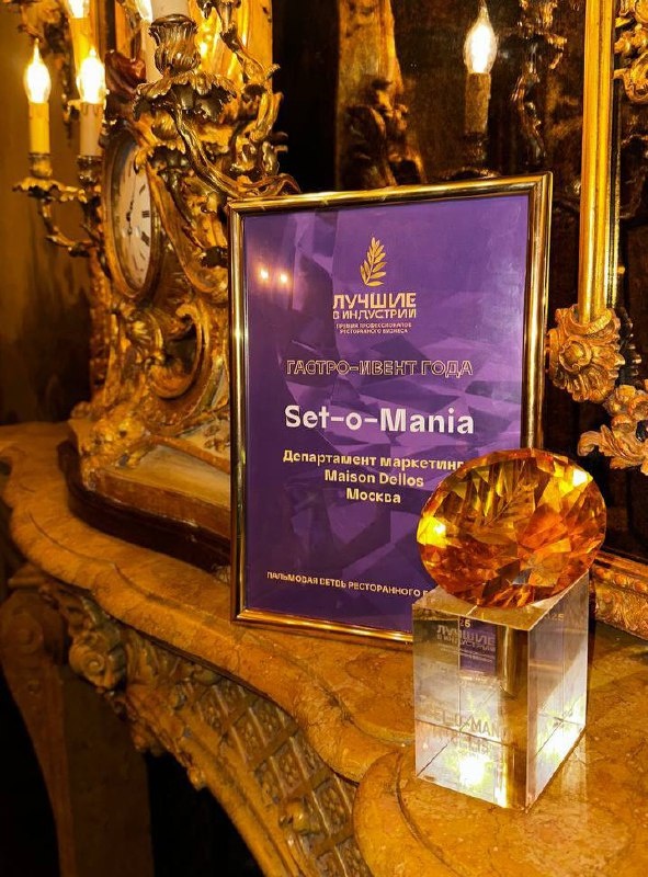 🏆 Пальмовая ветвь ресторанного бизнеса 2025 Фестиваль Set-o-Mania получил премию «Лучшие в индустрии» в категории «Гастро-ивент года». Мы благодарим наших партнёров за поддержку, а также гостей, которые выбирают наши рестораны и поддерживают фестиваль. Благодаря вам проект развивается и становится масштабнее🤍 В ближайшее время стартует новый сезон Set-o-Mania.