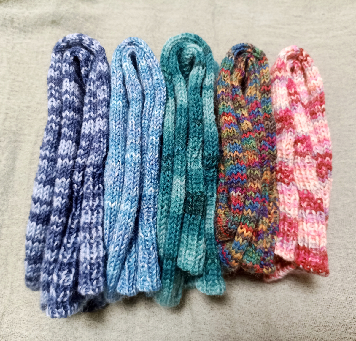 Носочный ноябрь прошел продуктивно и, можно сказать, предсказуемо. Я запланировала на этот месяц связать пять пар носков, и их, собственно, и связала. Попутно играя в носочную рулетку. В прошлый раз я подключалась 20 ноября. И на тот момент у меня не было еще ни одной готовой пары. Зато было по одному носку из каждой:) Но все носки я довязала точно по графику 30 ноября. Из всей пряжи я уже вязала, так что расскажу про каждую буквально пару слов. 1. Первыми довязались носки из Alize Artisan цвет 9002. Секции подгонять поленилась, так что небольшой сдвиг есть. Вязала на размер 37-38, ушло 56 грамм. У Artisan за этот год появилась парочка новых расцветок, как минимум одну в январе куплю попробовать. 2. Вторыми до финиша дошли носки из Drops Fabel Long Print. Все расцветки я вязала на размер либо 37-38, либо 42-43, эти тоже пыталась связать поменьше, но получился в итоге все равно 39-40. Пряжа самая пухлая из всех, и я, оказывается, отвыкла рассчитывать петли на спицы 2,5мм. Расход 57