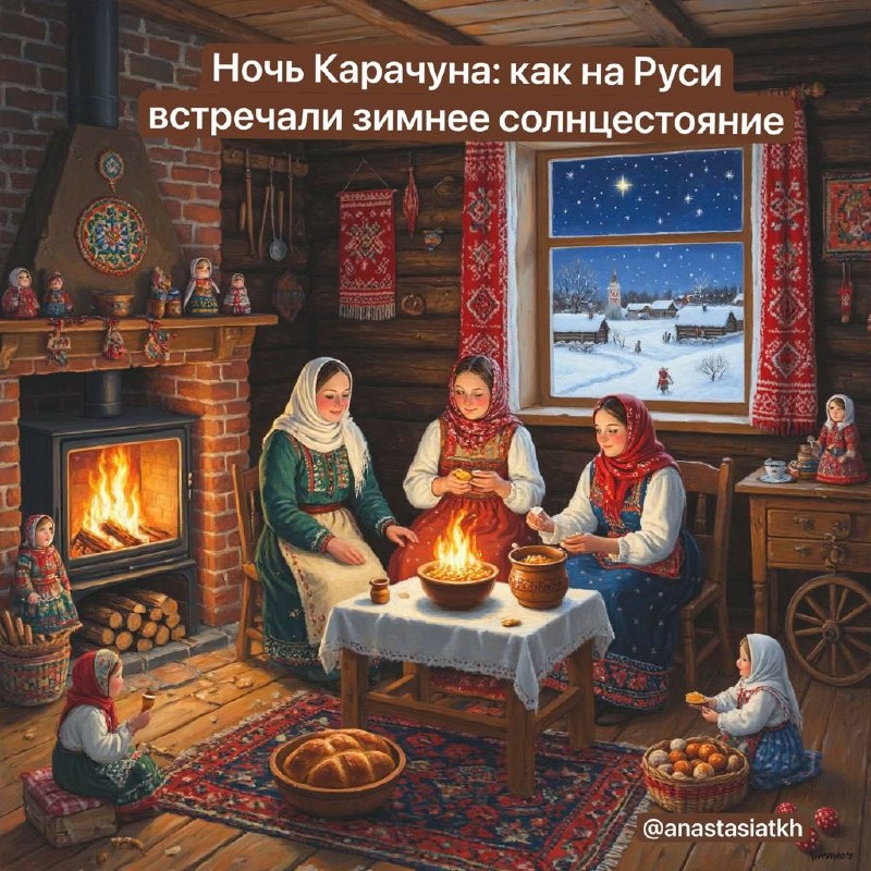 На Руси зимнее солнцестояние знали как Ночь Карачуна — момент, когда граница между мирами истончалась, а духи предков приходили к живым. Это был не праздник страха, а сакральный переход: ✨ Темнота считалась священной — в ней вызревали семена новых начал ✨ Предков приглашали за стол — оставляли им угощения как соавторам будущего ✨ Женщины гадали на воске и нитях — вопрошая о судьбах рода в новом цикле Карачун — не божество смерти, как часто трактуют сейчас. Это архетип Зимнего Владыки, хранителя врат между эпохами. Его ночь учила: чтобы родиться заново, нужно принять тьму как утробу для нового света. P.s. Напоминаю, что на женском круге 21.12 будем соприкасаться с традициями Славян 🎆 #культурный_код_тк