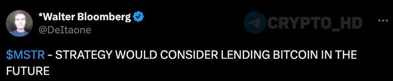 🔥 В будущем компания Strategy (#MSTR) может начать выдавать кредиты в BTC – Bloomberg
