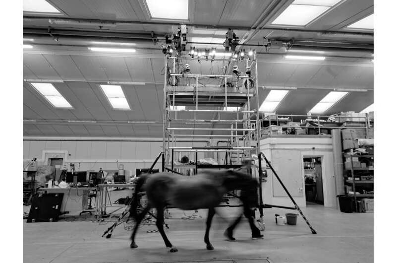Боли в спине у лошадей распространены по меньшей мере у 35% верховых лошадей и часто объясняются плохой посадкой в седле. Новый метод сканирования движущихся лошадей позволил доктору Йорну Чейни, исследователю движения животных из Университета Саутгемптона, Великобритания, создать улучшенную карту седла, которая может уменьшить боли в спине у лошадей. В настоящее время седла подгоняют под лошадей на неподвижных животных, но это не учитывает того, как седло меняет положение во время движения лошади. «Мы были удивлены, обнаружив, что форма неподвижного животного существенно отличается от усреднённой формы движущегося животного, — говорит доктор Чейни. — Мы ожидали увидеть разницу, но не такую существенную». Доктор Чейни и его команда измерили изменения в форме спины лошадей, сняв их на видео (фото с движением лошади в поле зрения камер) во время ходьбы и бега рысью с помощью нескольких камер. Затем они реконструировали область седла, которая менялась на протяжении всего шага, и