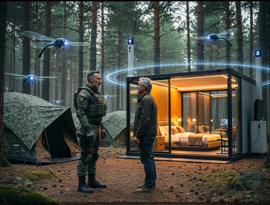 Лагерь был миражом: палатки с адаптивным камуфляжем сливались с лесной подстилкой, дроны-невидимки размером со стрекозу патрулировали периметр. Громов встретил Льва не как пленника, а как VIP-персону.