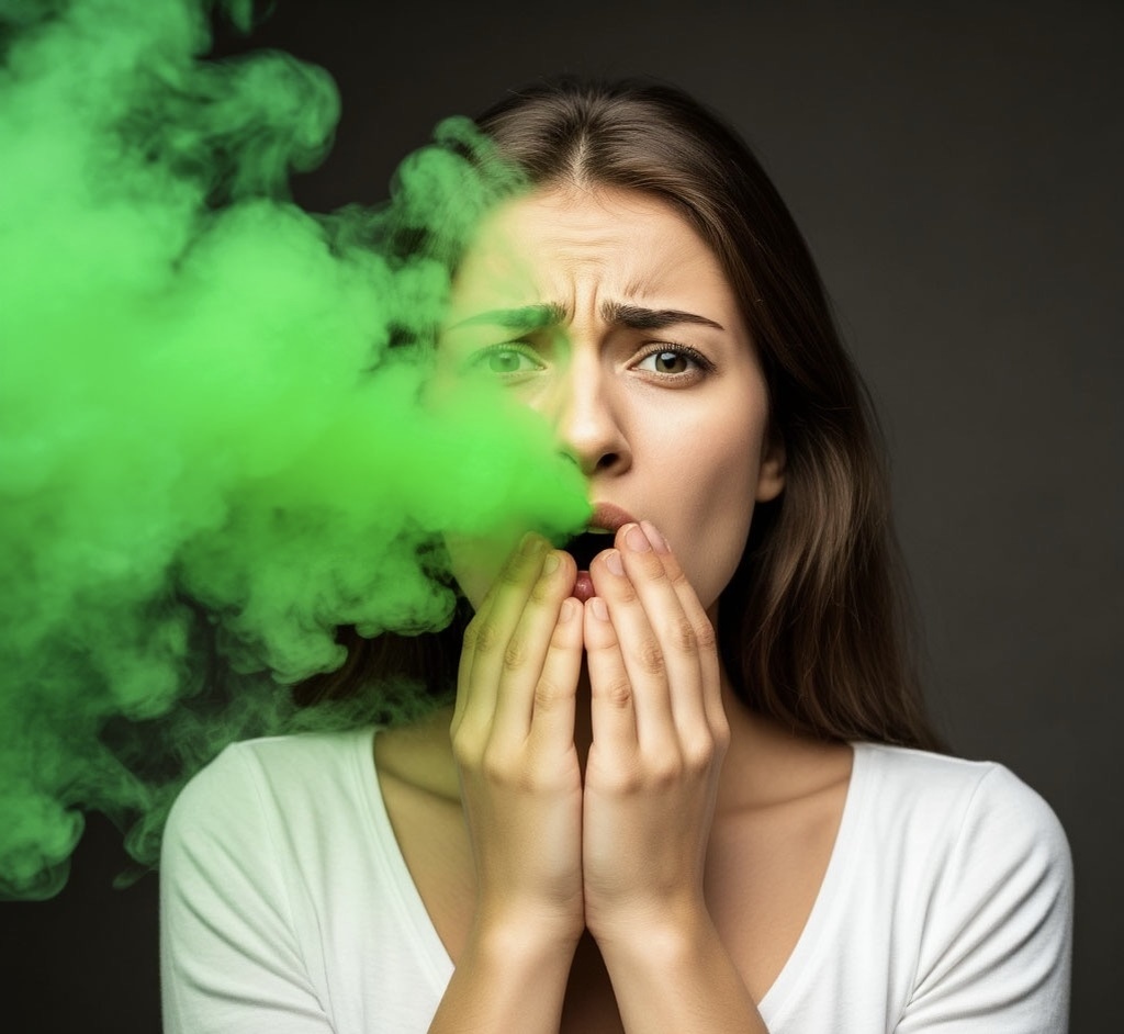 Галитоз, научный термин неприятного аромата при дыхании — это не что иное, как процесс жизнедеятельности бактерий, а именно выделяемый ими газ. Соответственно, чем больше микроорганизмов во рту — тем сильнее амбре. В обычной ситуации после качественной гигиены популяция микробов уменьшается и появляется свежесть. Но есть нюансы, которые имеют прямое влияние на полное отсутствие результата, либо на быстрое возвращение запаха. Заболевания зубов и дёсен (кариес, гингивит, пародонтит) Ортодонтические проблемы (плохое прилегание протезов, коронок) Ксеростомия (сухая слизистая) Воспаления ЛОР органов (синусит, тонзиллит) Нарушения работы ЖКТ (холецистит, рефлюкс) Сбой эндокринной системы (диабет) Стоматолог проведёт осмотр и выявит причину галитоза. Возможно достаточно будет сделать профгигиену, а может понадобится консультация других специалистов. Для профилактики появления данного изъяна постарайтесь придерживаться правильного питания, поддерживать водный баланс,