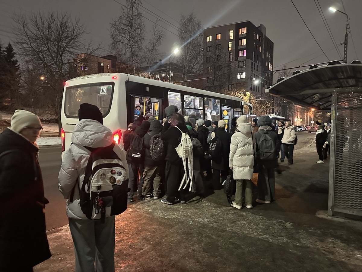 Текст, фото: Елена Малишевская Школу № 12 в Сулажгоре продолжают ремонтировать. А ученики этого учебного заведения, которых временно перевели в школу № 14 на Первомайском проспекте, продолжают биться за свое место в автобусе. В редакцию «Петрозаводск говорит» обратилась жительница Сулажгоры Ольга - ей очень жаль детей, вынужденных часами стоять на холоде. Но также жаль и взрослых, которые не могут уехать домой после работы. Петрозаводчанка Ольга прислала в нашу редакцию несколько видео. На одном из них хорошо видно, как маршрутка № 30 пролетает мимо остановки - она уже заполнена учениками и больше никого взять не может. А людям, живущим в Сулажгоре и на СКЗ, ни на каком другом транспорте, кроме как автобусе № 30, с Первомайского проспекта не уехать. На другом видео - наоборот, автобус переполнен взрослыми, дети остались на остановке. Многие из них - в легких курточках. Один мальчик вообще в одной толстовке. А следующего автобуса ждать сорок минут. Школа № 12 в Сулажгоре закрыта на втор
