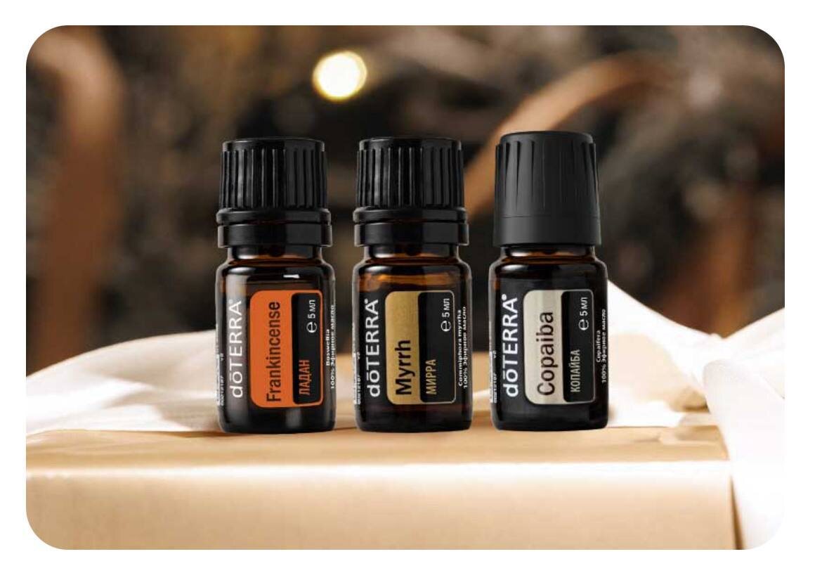 Бесценный подарок Дарить эфирное масло ладана под Новый год уже стало доброй традицией. В этот раз Дед Мороз предложил нам дополнить этот подарок еще парой бутылочек — а мы и не стали спорить со знатоком. Вот какой получился набор. Эфирное масло ладана, 5 мл Эфирное масло мирры, 5 мл Эфирное масло копайбы, 5 мл Чтобы получить сразу три потрясающих подарка, сделайте с 4 декабря заказ (стандартный, регистрационный, по Программе лояльности) от 200 PV на складе Россия (ОТГ)! Лимит: 4 набора подарков на аккаунт.