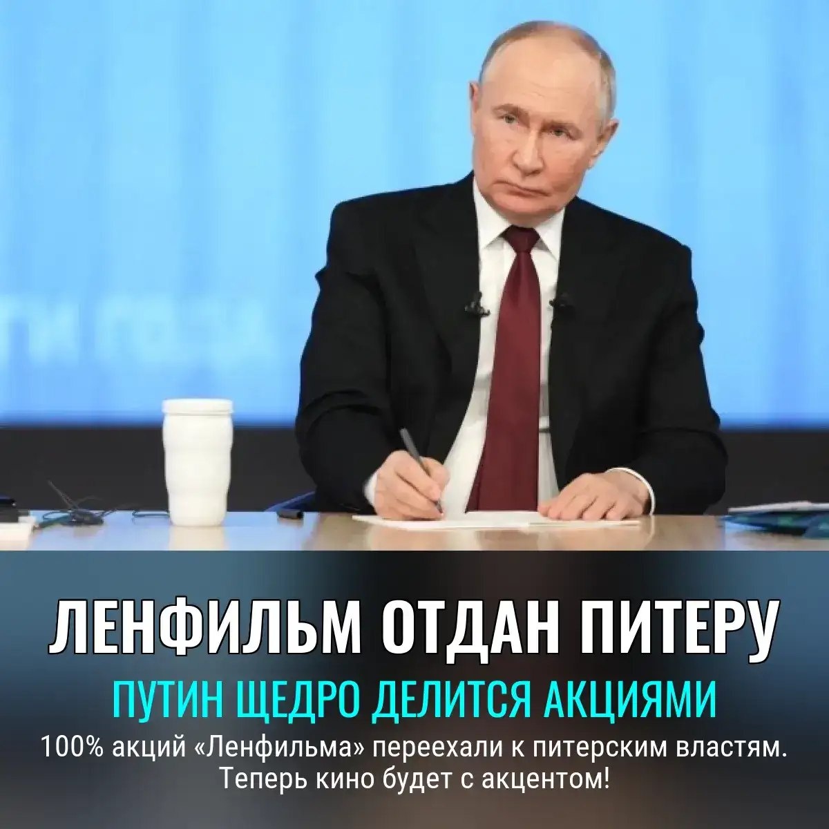 Кино с пропиской на Неве 🎬 Путин официально подарил Санкт-Петербургу легендарную студию «Ленфильм» – целых 100% акций! Теперь местные чиновники могут чувствовать себя продюсерами, а не только менеджерами дворов. Ветераны предложили — президент исполнил. За полгода студию обещают передать питерским властям. Можно ждать, что фильмы про балет, мосты и дождь станут кошмаром федерального эфира. Как говорится, держитесь, москвичи: у «Ленфильма» теперь новая прописка, а значит, страдать будут все зрители России., Следите за новостями 📩
