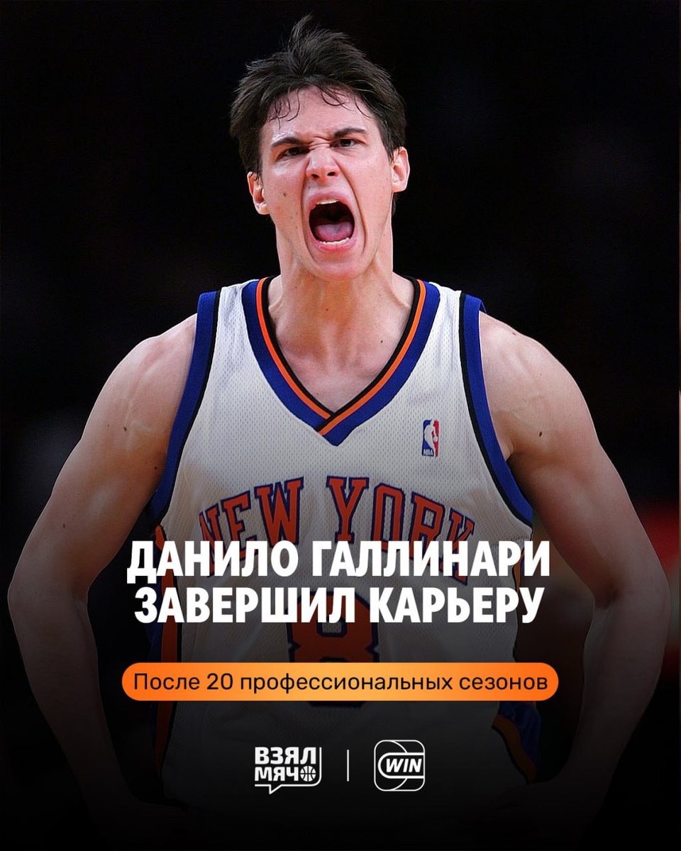 😏 В этом сезоне тенденция на завершение карьеры? Данило Галлинари объявил об уходе из профессионального баскетбола после 20 сезонов, 16 из которых он провёл в НБА. Итальянец был выбран на драфте 2008 года под шестым пиком «Нью-Йорком». Большую часть своего дебюта в НБА Галлинари пропустил из-за травмы спины, появившись лишь в 28 играх регулярки. Свой лучший сезон он провёл в составе «Клипперс», в среднем набирая 19,8 очка, отдавая 2,6 передачи и собирая 6,1 подбора. Последним клубом 37‑летнего баскетболиста был пуэрто‑риканский «Баямоне». Заслужил ли Галлинари место среди лучших европейцев в истории? 🤔 🏀 ПОДПИШИСЬ — ЗДЕСЬ ЖИВЁТ БАСКЕТБОЛ!