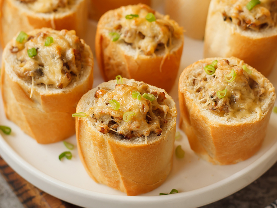 Гостям закуска очень понравилась: пеньки с начинкой из обычного багета