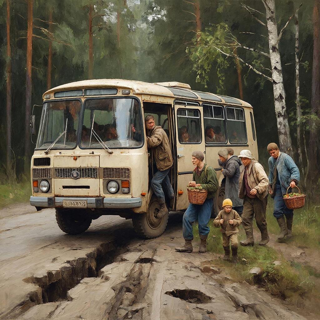 Целый автобус, старенький жёлтый ПАЗик, набился, чтобы везти людей в лес за грибами. Ехали все с работы, с часового завода — дело было в моём детстве, бабушка с дедушкой работали на этом заводе, а отец с дядей облазили его фабричную канавку уже в своём детстве, в поисках полудрагоценных камней, оставшихся ещё с гранильной фабрики, ну а меня только-только сводили со школы на экскурсию показать, как же это круто собирать часы, скорчившись над столом с лупой и мини-отвёртками.