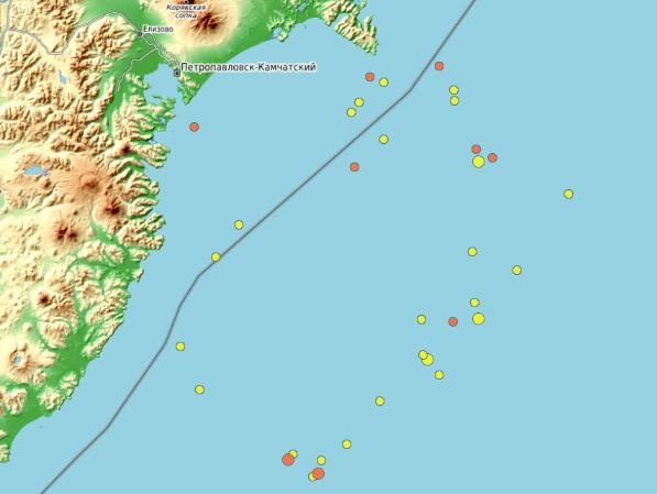📌 Девять неощущаемых афтершоков за сутки случилось у берегов Камчатки