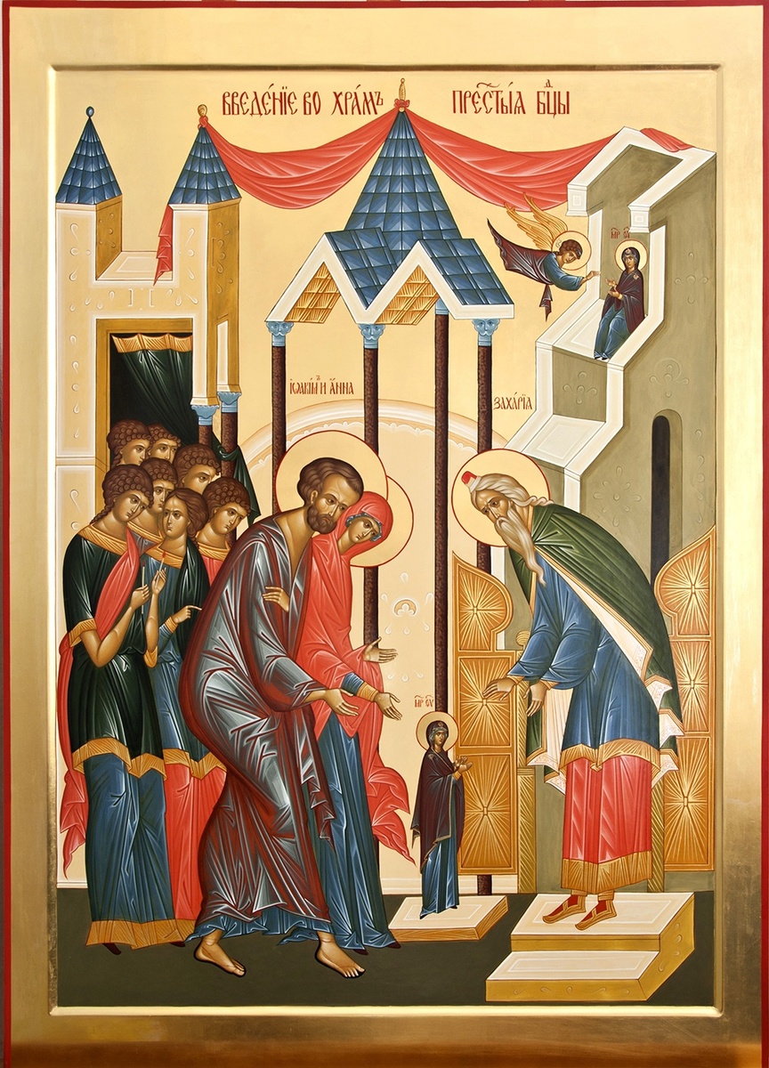 В этот день первосвященник Захария духом предчувствовал что-то необычное, чрезвычайное. И когда торжественная процессия приблизилась к храму, он вышел навстречу шествию и совершил нечто, по меркам иудейских законов, из ряда вон выходящее – ввел приведенную Деву во Святая святых. Туда, куда сам священник мог входить только один раз в год. Тогда значение этого действия осталось сокрытым для понимания. Гораздо позже в праздничной службе будет петься, что такому вхождению Пречистой удивились даже ангелы.