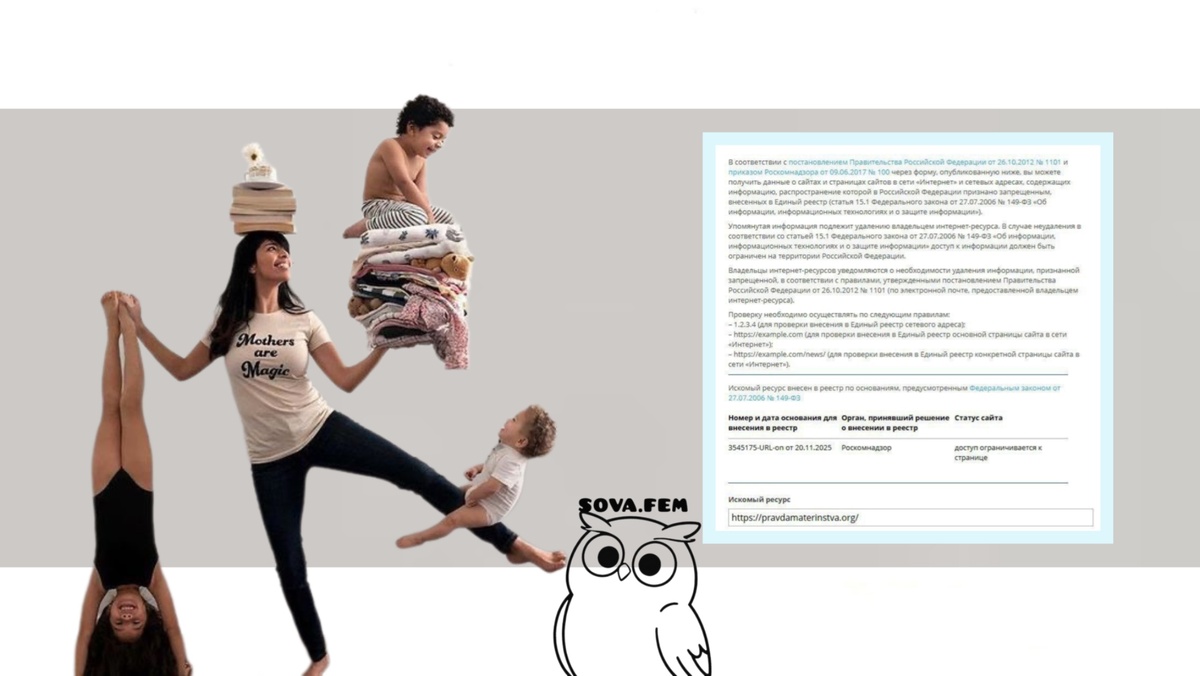Роскомнадзор начал блокировать доступ к сайту «Вся правда о материнстве, беременности и родах» — это восстановленный архив одноименной группы во «ВКонтакте», где женщины делились проблемами, связанными с деторождением. Теперь ресурс доступен пользовательницам из России только через VPN. «Вместо того, чтобы улучшать условия в роддомах, российские чиновники предпочитают просто цензурировать и блокировать рассказы женщин о плохих условиях. Вместо того, чтобы учитывать жалобы молодых матерей, чиновники хотят, чтобы они замолчали. Они считают, что нерожавших женщин нельзя предупреждать о том, какие трудности их ждут, если они решат завести ребенка», — написала в своем телеграм-канале администраторка группы. Впервые цензура коснулась сообщества «Вся правда о материнстве, беременности и родах» в конце 2024 года — после принятия закона о запрете «пропаганды» чайлдфри. Посты о трудностях беременных удаляли «за описание суицида». Тогда группа покинула ВК. Спустя год ее восстановили в формате отдельного сайта, однако менее чем через месяц РКН снова начал блокировать контент. «А потом эти же чиновники удивляются, почему падает рождаемость вторых и последующих детей. Из-за “пропаганды чайлдфри”? Или, может быть, из-за того, что женщины узнают о негативных последствиях и плохих условиях на собственном опыте? Можно, конечно, все запретить и заблокировать. Вот только ситуацию с закрытием роддомов и низким уровнем медицинской помощи это никак не исправит», — заключила администраторка.