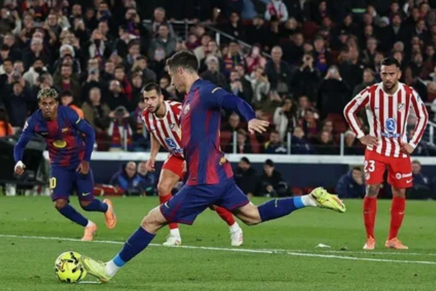 "Барселона" дома со счетом 3:1 обыграла "Атлетико" в перенесенном матче 19-го тура чемпионата Испании. Встреча прошла на стадионе "Камп Ноу". В составе победителей голы забили Рафинья (26-я минута), Дани Ольмо (65) и Ферран Торрес (90+6). У "Атлетико" отличился Алекс Баэна (19). На 36-й минуте нападающий "Барселоны" Роберт Левандовски не реализовал пенальти, пробив выше ворот. "Барселона" укрепилась на первом месте турнирной таблицы чемпионата Испании, команда набрала 37 очков и продлила победную серию в турнире до пяти игр. Каталонцы на четыре очка опережают идущий вторым "Реал", который проведет свой матч 19-го тура 3 декабря, команда в гостях сыграет с "Атлетиком". "Атлетико" идет на четвертом месте с 31 очком, мадридцы прервали свою серию из семи побед во всех соревнованиях. В следующем матче чемпионата "Барселона" на выезде сыграет с "Бетисом", "Атлетико" в гостях встретится с "Атлетиком". Обе игры пройдут 6 декабря.