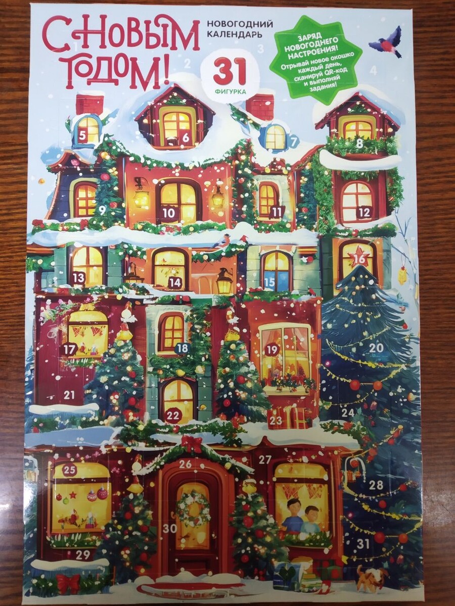 Пожалуй, очередной минус конкретно для меня – одинаковые шоколадки. В прошлом году у меня был Альпен Голд и Маша и медведь, там разные сладости были. А тут элемент интриги потерян, потому что каждый день получаешь одинаковый кругляш. ))