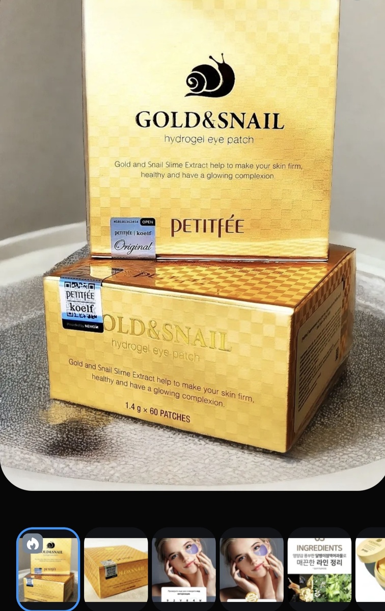 Именно сочетание муцина улитки и золота делает эти патчи «супер-уходом за кожей вокруг глаз».