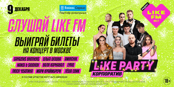 На протяжении пяти дней в эфире любимого радио будут разыгрываться билеты на незабываемый новогодний движ Радиостанция Like FM в 2025 году продолжает серию знаменитых дерзких вечеринок. На этот раз любимая радиостанция устраивает незабываемый новогодний движ с модными и любимыми звездами. Шанс побывать на зажигательном корпоративе получат жители Костромской области. Like Party «КОРПОРАТИВ 2025» пройдет 9 декабря в Москве в легендарном клубе BASЕ. Звездными гостями новогодней вечеринки станут «Artik & Asti», Лёша Свик, Люся Чеботина, «Пицца», Мари Краймбрери, Ольга Бузова и многие другие артисты. Каждый будний день с 26 ноября на протяжении 5 дней (26, 27, 28 ноября 1, 2 декабря) в эфире радиостанции Like FM Кострома на частоте 89,7FM будут разыгрываться билеты на новогодний корпоратив со звездами в Москве. Партнёр розыгрыша — Федеральная транспортная компания «Байкал Сервис». Чтобы попасть на новогоднюю вечеринку в Москве, внимательно слушай Like FM Кострома 89,7FM, и после сигнала от