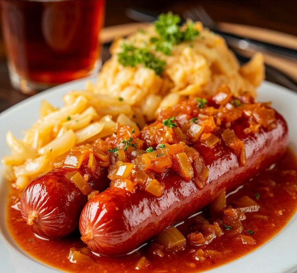 ГОРЯЧЕЕ — КАРРИВУРСТ С ТУШЕНОЙ КАПУСТОЙ 🌭 Мяу, любители немецкого уличного фастфуда! 🥨 Сегодня мы готовим карривурст — возможно, самый знаменитый немецкий фастфуд, родившийся в Берлине! 🇩🇪 А подаем его с тушеной капустой — сытно и по-домашнему уютно! 🏠 КАРРИВУРСТ С ТУШЕНОЙ КАПУСТОЙ 🥬 СПРАВКА ОТ МАРУСИ: 🏙️ Карривурст (Currywurst) — это, возможно, самый знаменитый немецкий фастфуд, родившийся в Берлине. Это отварная, а затем обжаренная свиная сосиска, нарезанная кусочками и обильно политая специальным кетчупом с добавлением порошка карри. Часто подается с картофелем фри или, как в этом рецепте, с тушеной капустой (в более "домашнем" варианте). ИНГРЕДИЕНТЫ (на 2 порции): 🧾 •Свиные сосиски (Bratwurst) — 4 шт. 🌭 •Капуста белокочанная — 400 г 🥬 •Репчатый лук — 1 шт. 🧅 •Яблоко (кисло-сладкое) — 1 шт. 🍎 •Томатный кетчуп — 100 g 🍅 •Вода или бульон — 100 мл 💧 •Растительное масло — 2 ст.л. ⛽ •Сахар — 1 ч.л. 🍬 •Яблочный уксус — 1 ст.л. 🍶 •Порошок карри — 1-2 ст.л. (по вкусу) 🌶