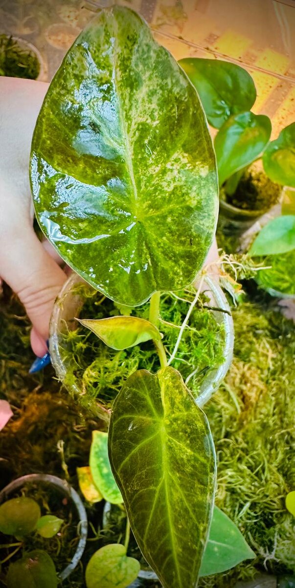 Кто здесь👀?Или история о сбежавшем папоротнике 🏃♂️ ну или не папоротнике 😳, даже не знаю пока кто он) История такова, есть у меня алоказия Регал шилдс вар, клубенек ее приехал из далекой Махачкалы, мох в который она посажена был заказан на ВБ и приехал живой из леса 🌲России. И вот где то подцепилось Это) скорее всего спора папоротника как то попала) пока растюхе не мешает, но и кто это определить пока не могу) пусть растет) #регалшилдс #алоказия #мох #тепличка #папоротник