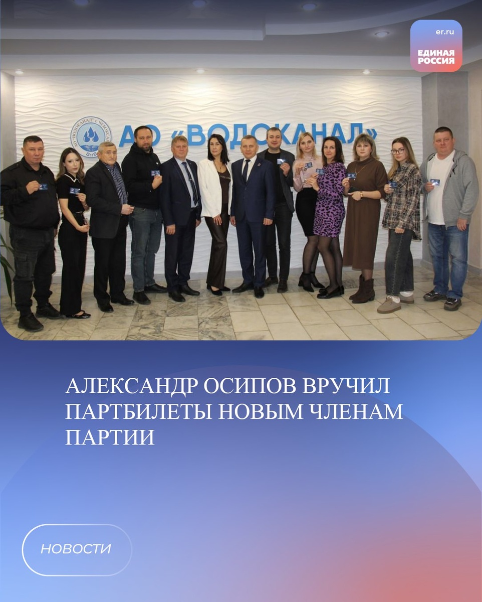 Руководитель регионального исполкома «Единой России» Александр Осипов вручил партбилеты новым членам партии – сотрудникам чебоксарского АО «Водоканал». Это не просто предприятие, а основа благополучия Чебоксар, его работники ежедневно обеспечивают жизнедеятельность столицы республики, чистую питьевую воду для полумиллиона жителей города, водоснабжение свыше 4 тысяч предприятий и организаций. Заводская партийная организация, в которой состоят ведущие специалисты предприятия, настоящие профессионалы своего дела, насчитывает уже свыше 120 человек. Причем в партию вступают и целыми семьями работников. #ЕР21 #ЕРЧувашия