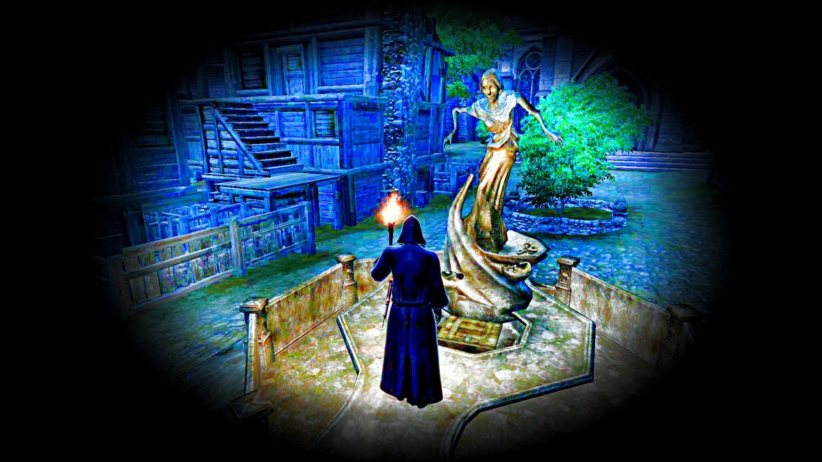 Квесты Тёмного Братства Сиродила. Итак, тёмной ночью мы прибыли в Бравил и оказались у статуи Счастливой Пожилой Леди. Аркуэн вкратце посвятила меня, новичка Чёрной Руки, в суть происходящего: Ну ё-моё… единственный положительный эффект от посещения Бравила развеялся в прах. Статуя Счастливой Пожилой Леди, дающая удачу всем путникам, кто к ней обращается – на самом деле Нечестивая Мать Ночи… Тем временем Аркуэн начала произносить ритуальное обращение: С противным скрежетом статуя зашевелилась… и у её ног открылся ведущий куда-то вниз люк. Все члены Чёрной Руки бодро спустились вниз, я замыкал это шествие. …Мать Ночи действительно существовала! Правда, в виде призрака. Аркуэн почтительно обратилась к ней: …Произошедшее дальше как бы раздвоилось: слева Мать Ночи упрекала Аркуэн в глупости, справа тот самый подозреваемый мной мститель Матье Беламон наконец-то не выдержал и проявил себя. Выхватив оружие, он оперативно прирезал стоящих рядом с ним босмера и имперца и тут же, игноря