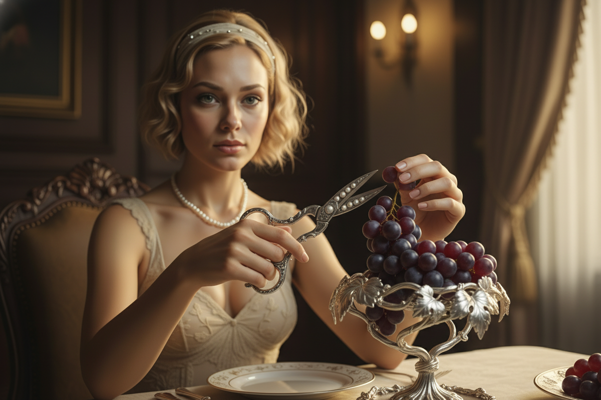 Виноград на столе — и рука сама тянется сорвать ягодку. А потом ещё одну. И вот уже пальцы липкие, на скатерти пятна, а соседи по столу смотрят с лёгким недоумением. Знакомая ситуация? Оказывается, для этой ягоды придумали целый ритуал. И специальный инструмент — виноградные ножницы. Выглядят как ювелирное украшение, а работают как хирургический скальпель. В XIX веке, когда европейская аристократия возвела застольный этикет в ранг искусства, появилась проблема: как элегантно съесть виноград, не превратив это в борьбу с гроздью? Ветки ломались, ягоды летели на пол, дамы пачкали перчатки. Решение нашлось изящное — миниатюрные ножницы с тонкими лезвиями. Принцип простой: на стол подают виноград веткой. Рядом лежат те самые ножницы. Вы аккуратно отрезаете небольшую гроздь, кладёте на свою тарелку и спокойно едите по ягодке. Никакой возни, никаких рывков за общую ветку. Главное правило — не отщипывать виноградины прямо с блюда и не отправлять их сразу в рот. Это считалось дурным тоном даже