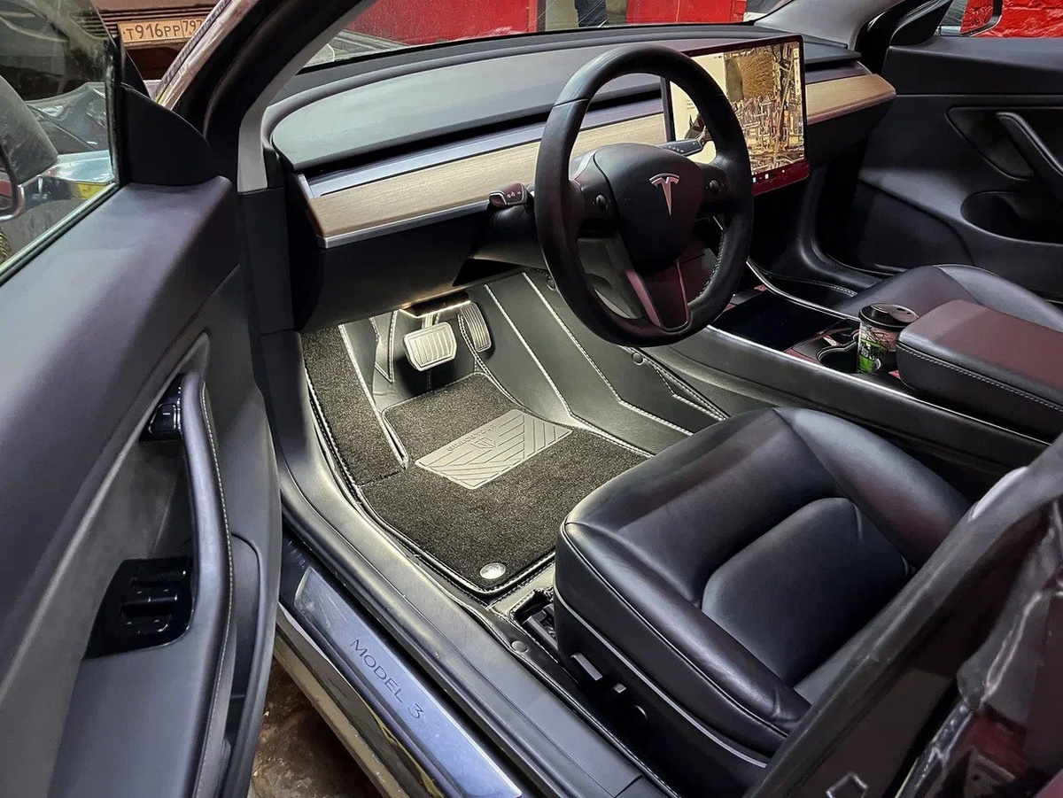 🔝 Tesla Model 3, 2019 г. в.🔝 ◾️ 3Д коврики в салон из экокожи Neo черный с бежевой строчкой. Рисунок Земля ◾️ Съемные коврики Бархат мягкий черный А Ваши 3Д автоковрики здесь 👉 @YAGiAuto_bot или по телефону +79585780148