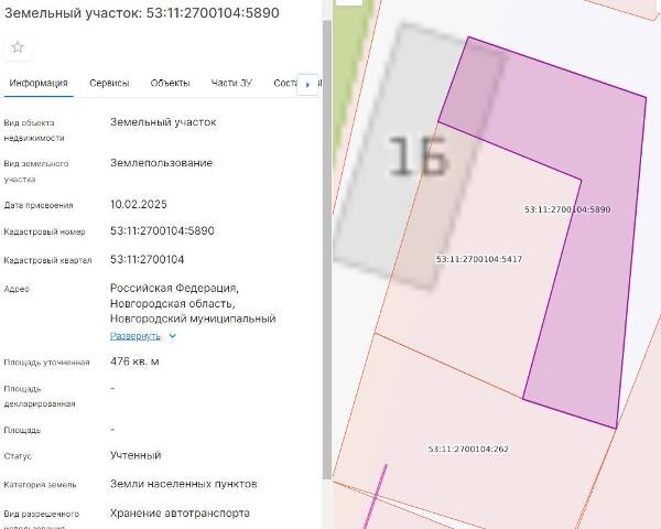 Название: Земельный участок из земель населённых пунктов с кадастровым номером 53:11:2700104:5890, площадью 476 кв.м, расположенный по